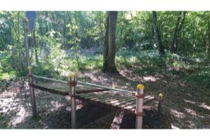 - Petit parcours footing (théoriquement interdit aux vélos) avec suggestions d'exercices et quelques agrès pour faire les exercices de base (barres parallèles, anneaux, plan incliné pour abdos, espalier… )